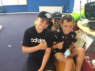 We had a great time smashing into each other and slamming on the ground. We found that the suits were quite big and baggy and that the Helmets kept falling off. We gave feedback to the parent and suggested she get new helmets or a buckle!